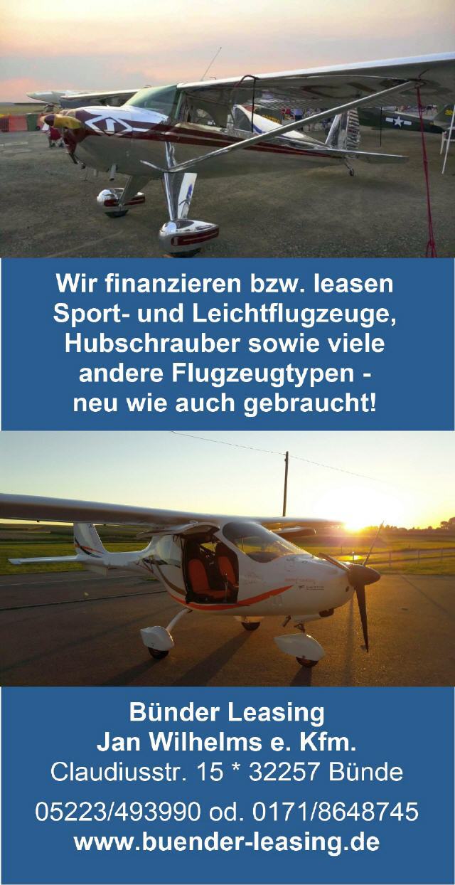 ... ein Leasing sowohl von neuen als auch von gebrauchten Flugzeugen möglich, sofern der aktuelle Wert mindestens 10.000 Euro beträgt und die Maschinen flugtauglich sind.